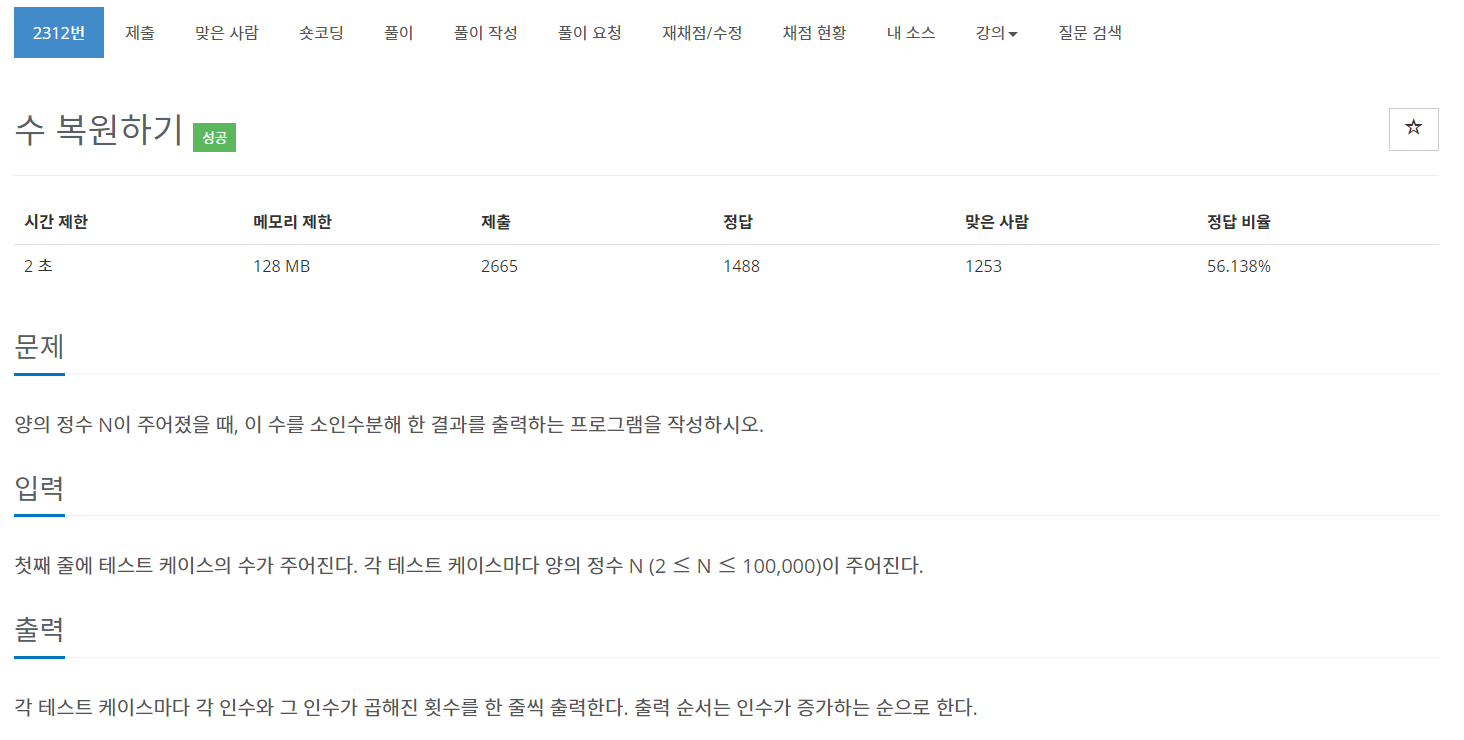이번에는 BOJ의 2312번 문제 "수 복원하기" 를 풀어보도록 하자