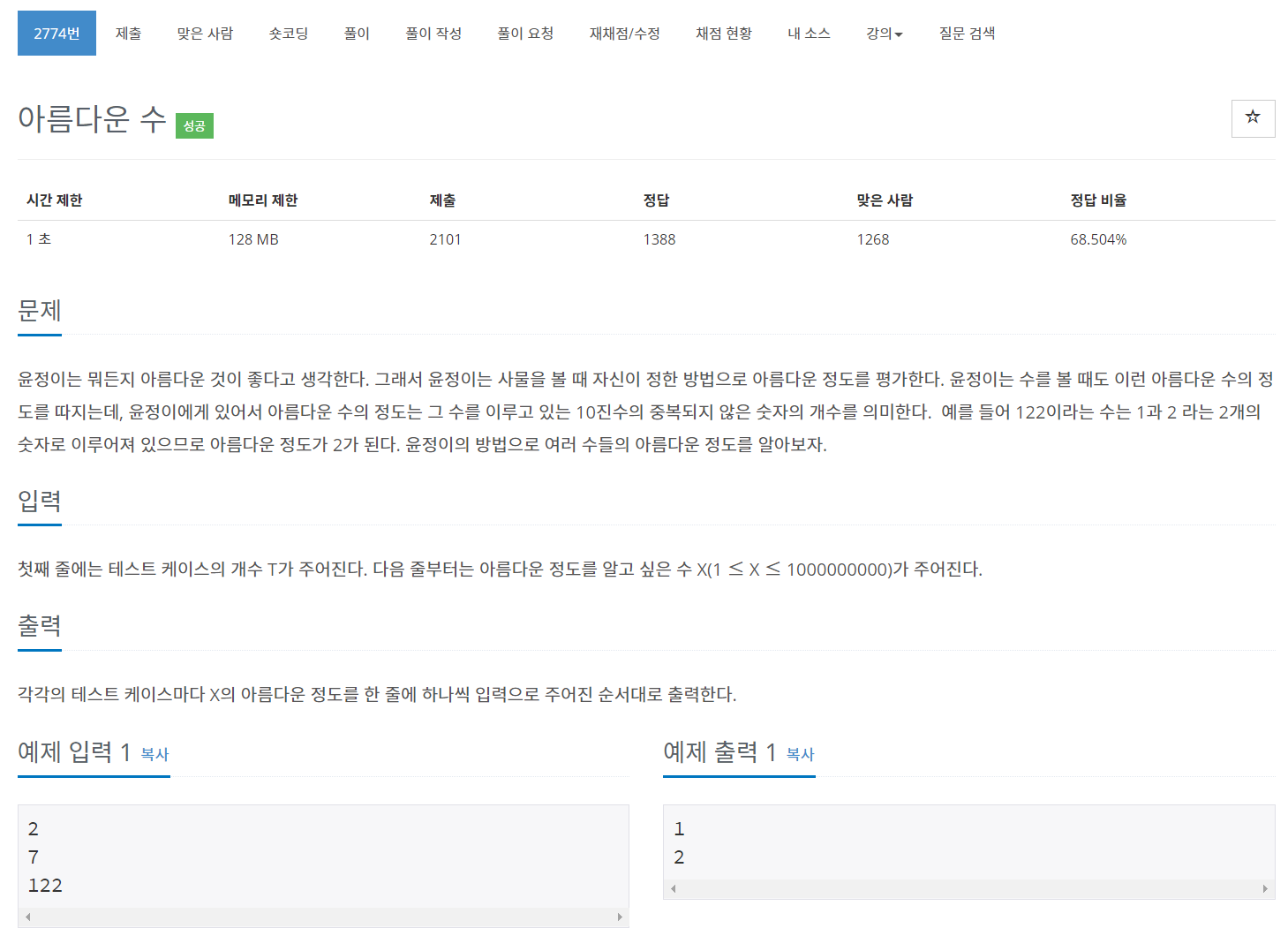 이번에는 BOJ의 2774번 문제 "아름다운 수" 를 풀어보도록 하자