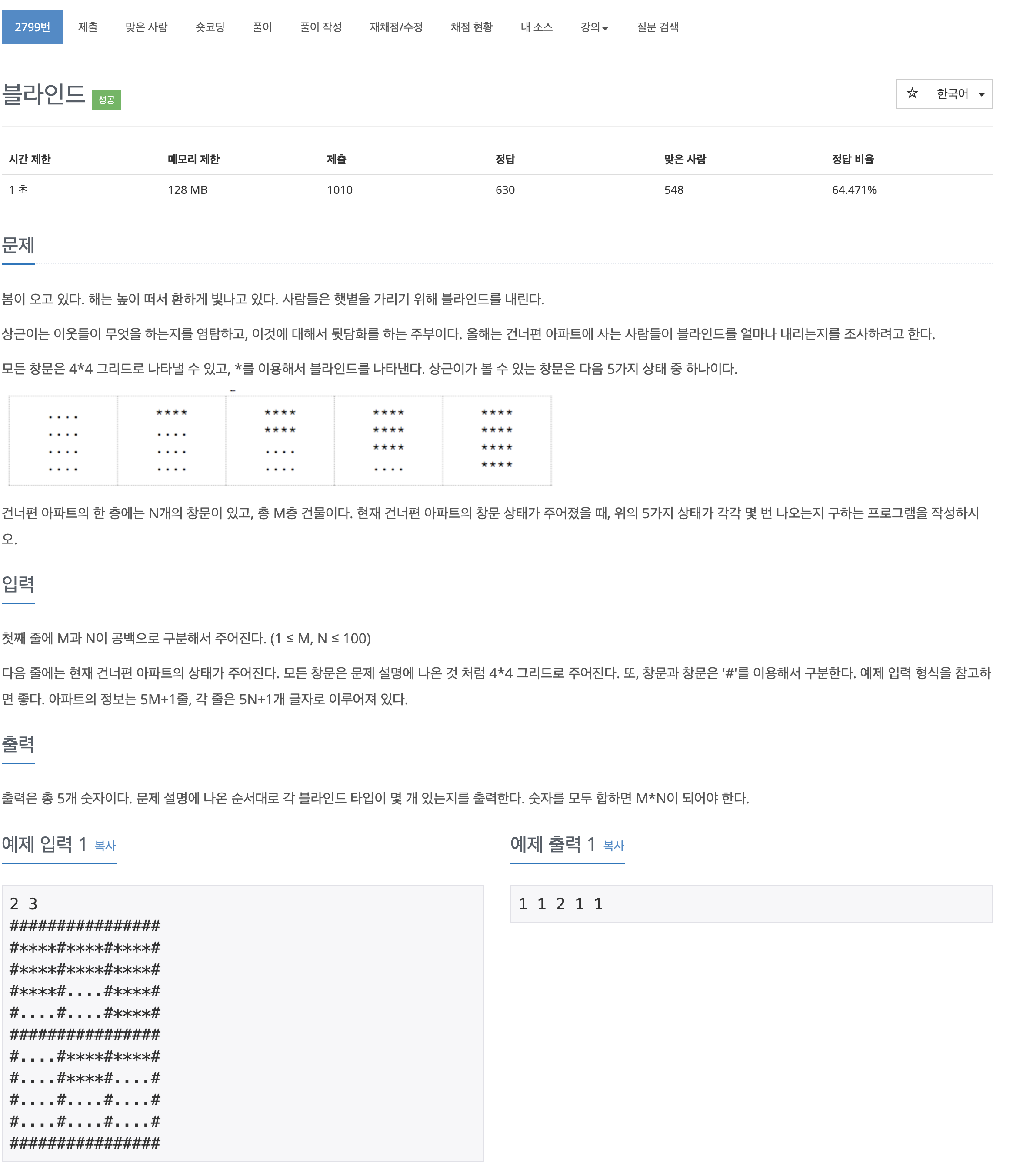이번에는 BOJ의 2799번 문제 "블라인드" 를 풀어보도록 하자