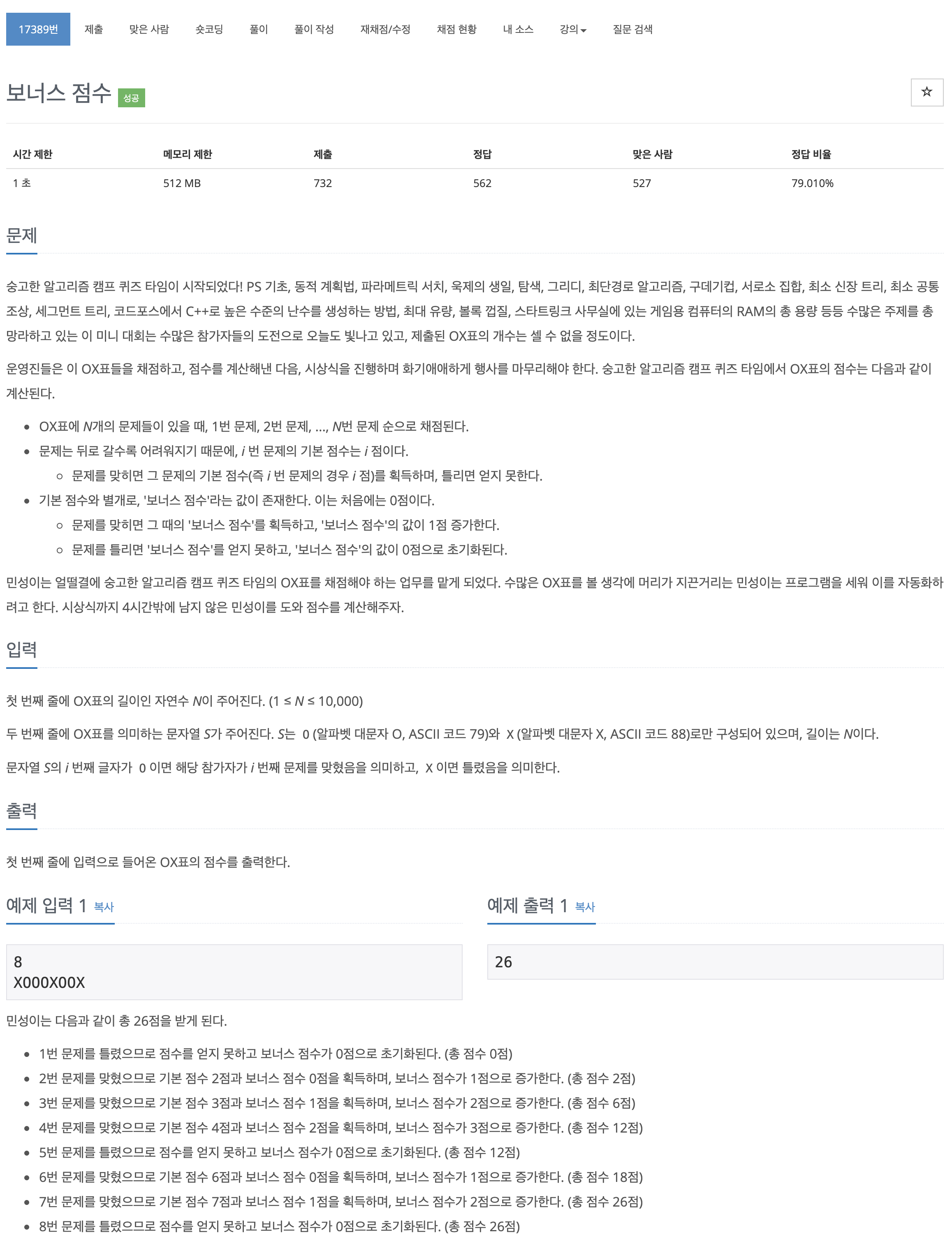 출력으로 입력으로 들어온 OX표의 점수를 출력하면 된다.
