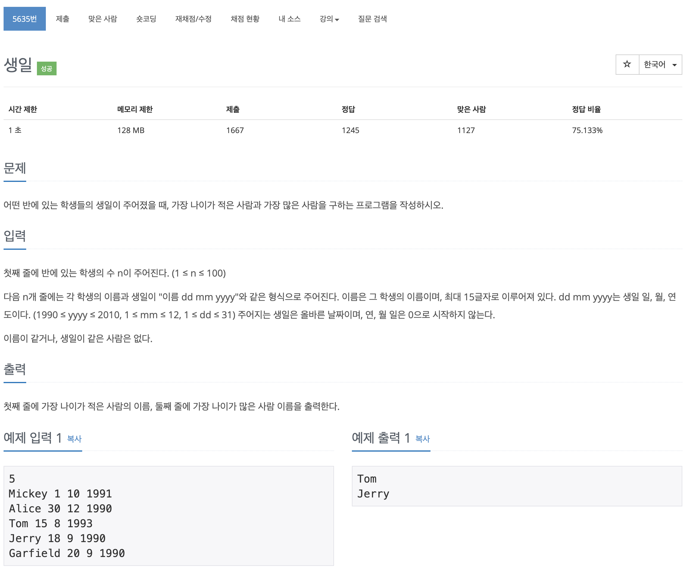 이번에는 BOJ의 5635번 문제 "생일" 을 풀어보도록 하자