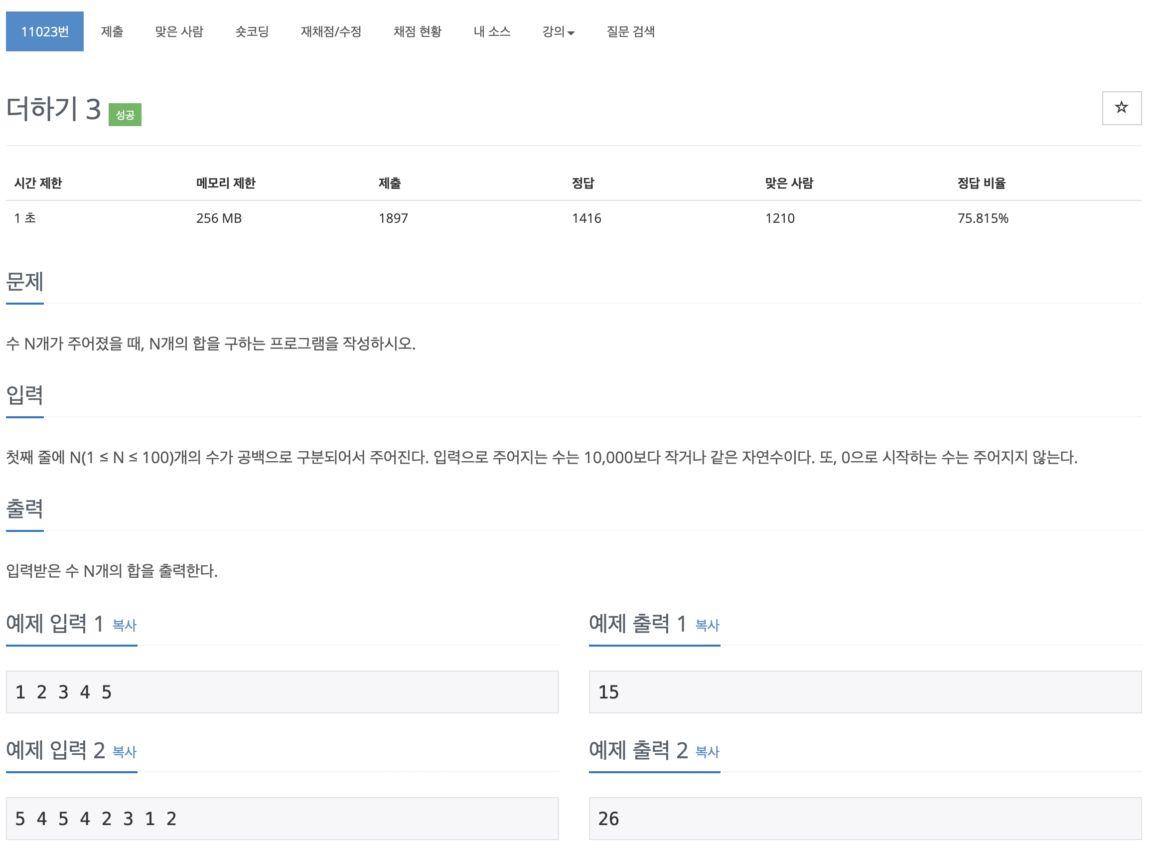 이번에는 BOJ의 11023번 문제 "더하기 3" 을 풀어보도록 하자