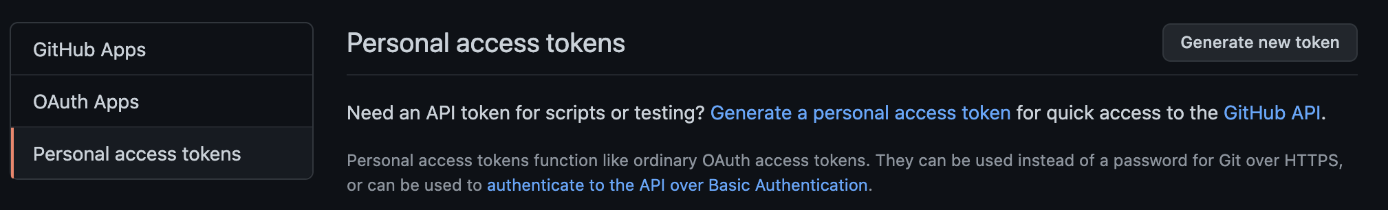 아래와 같이 기존에 토큰이 있었던 Personal access tokens 가 비어있던지 에러가 뜨면서 사용할 수 없다고 뜨는 것을 확인할 수 있을거야