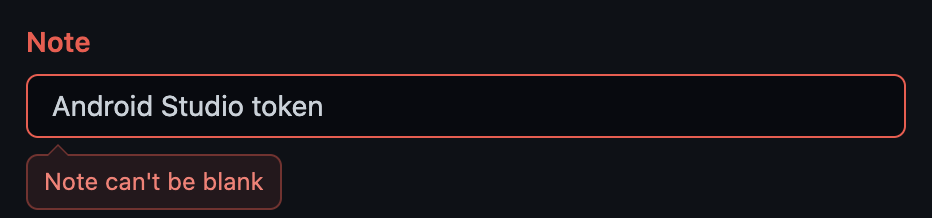 쨔쟌~ Note 를 적어넣으라고 뜨네...;; 그럼 넣어주면 되지 Android Studio Token 으로 대충 휘갈기고 [Generate token] 을 해주면