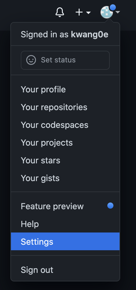 어카운트 셋팅에 들어가서 Developer settings 를 확인해 보면