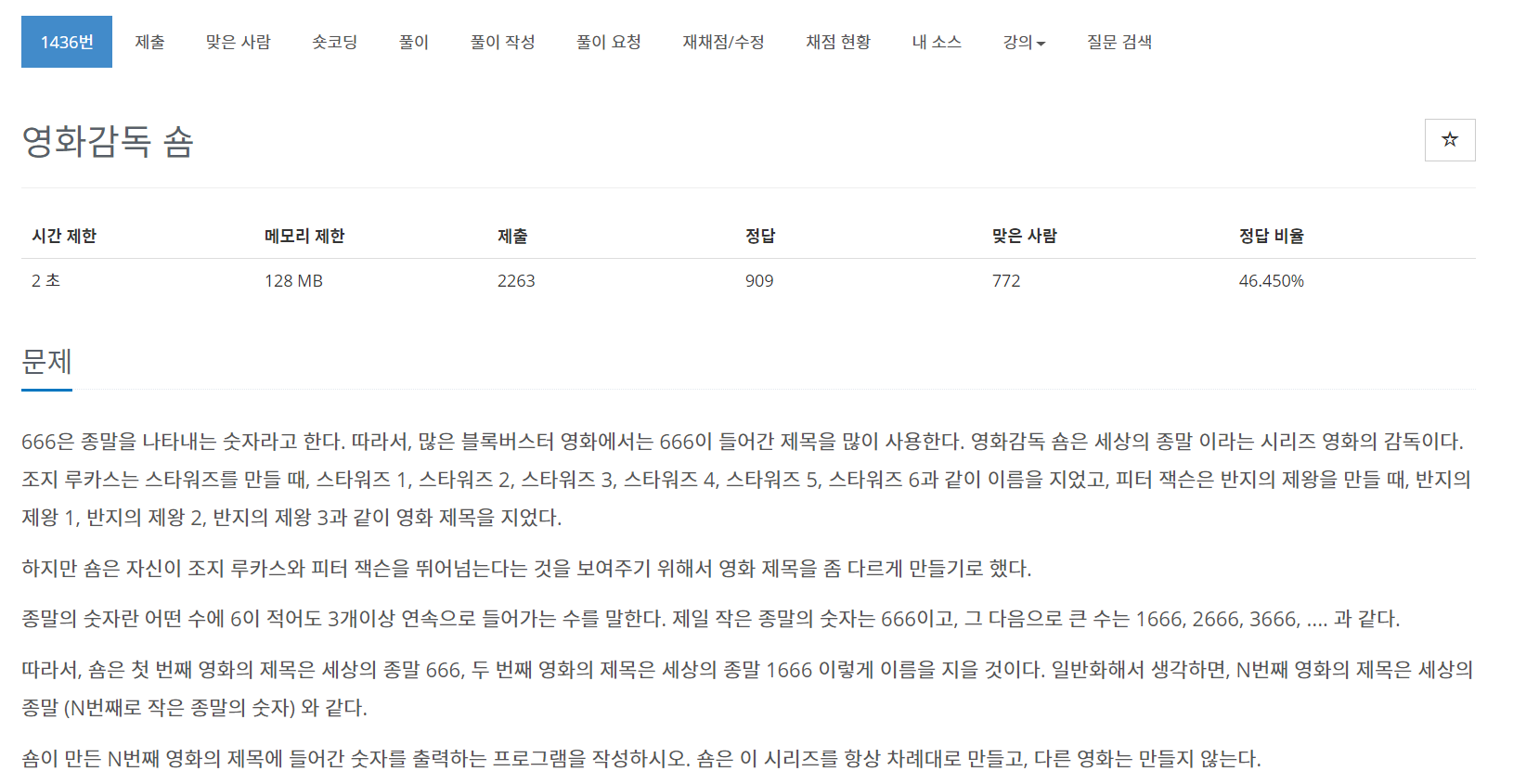 백준 알고리즘 1436번 영화감독 숌 문제를 Java로 풀어보자