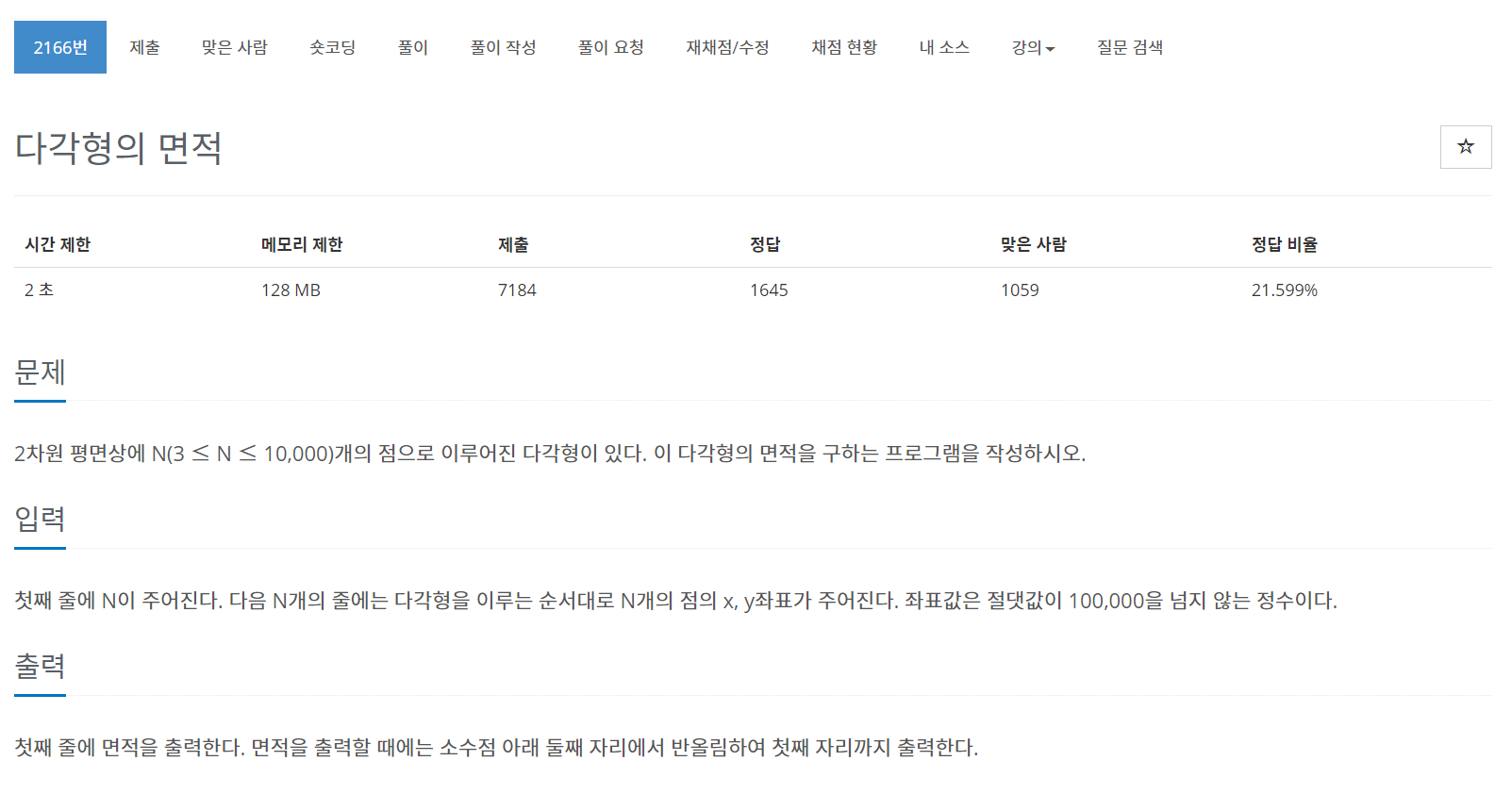 이번에는 BOJ의 2166번 문제 "다각형의 면적"을 풀어보도록 하자