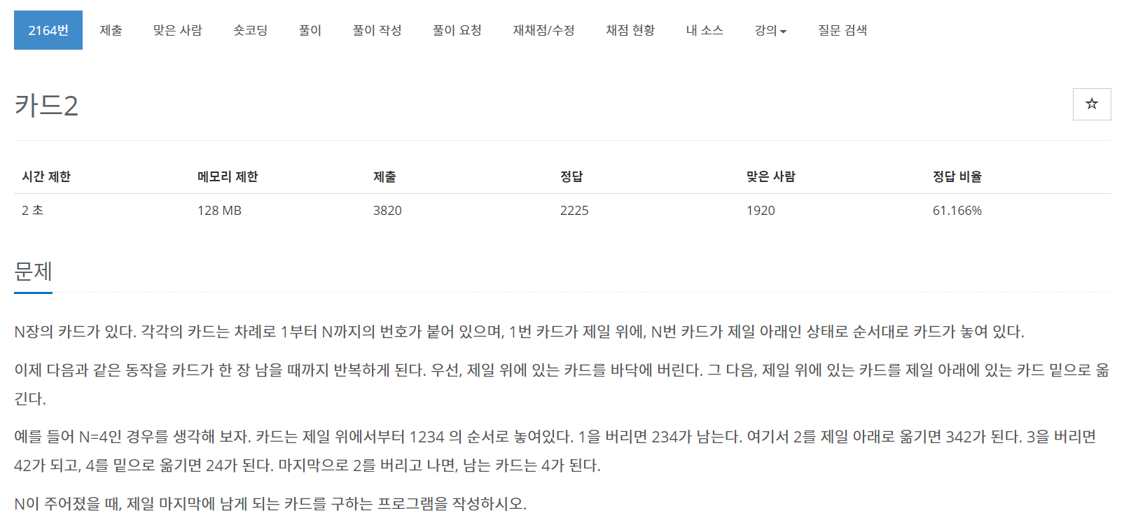2164번: 카드2