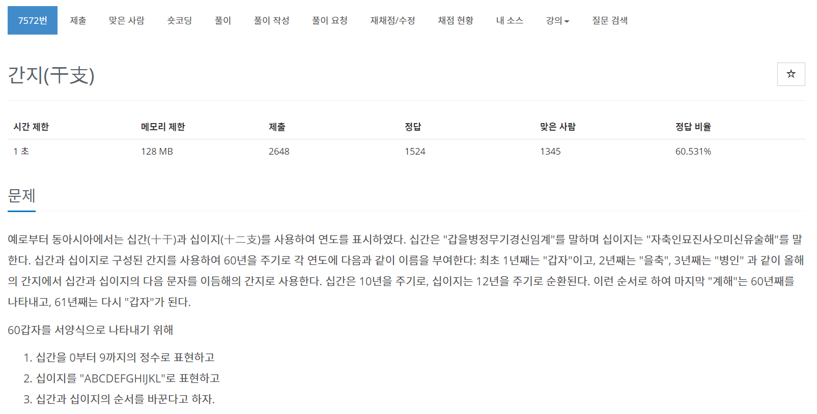 이번에는 BOJ의 7572번 문제 "간지(干支)"를 풀어보도록 하자