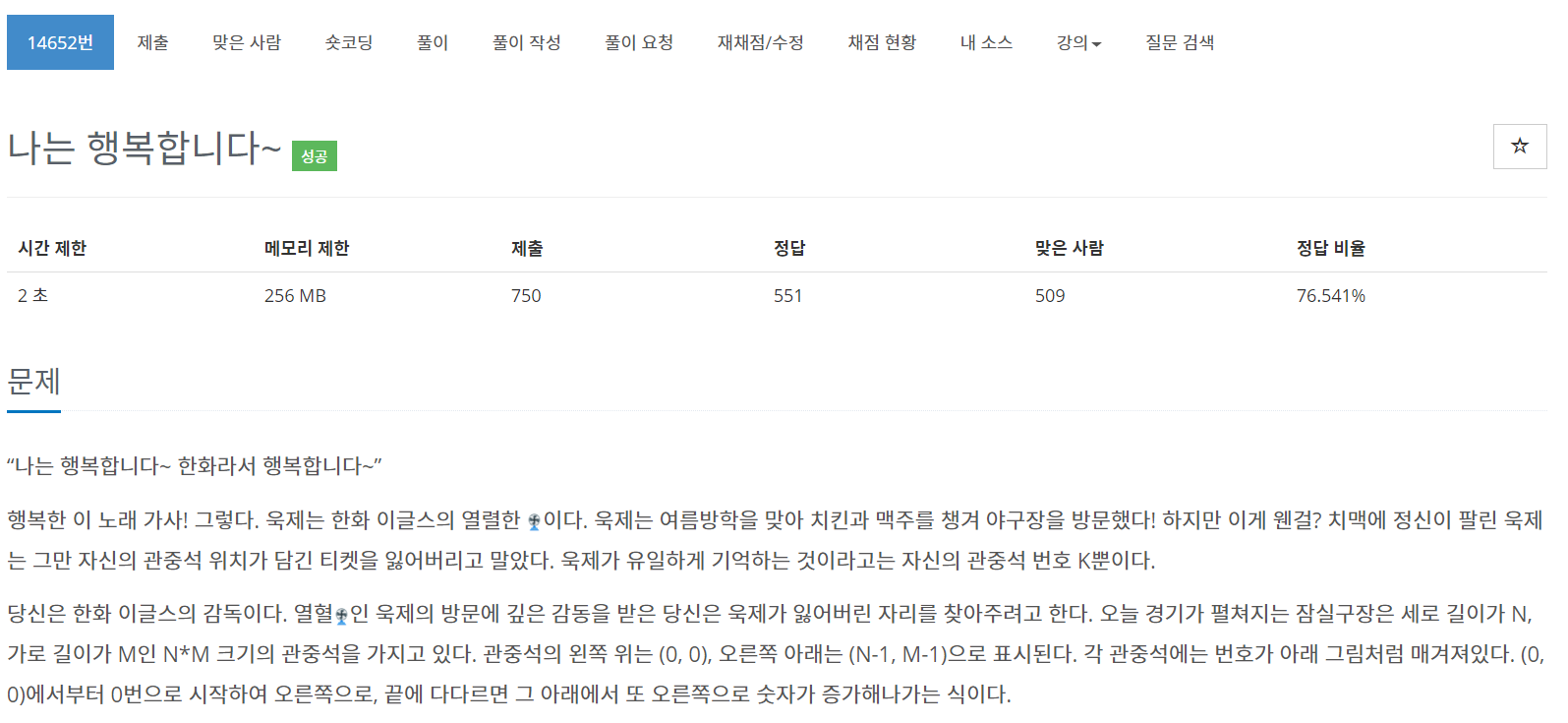 이번에는 BOJ의 14652번 문제 "나는 행복합니다~" 를 풀어보도록 하자