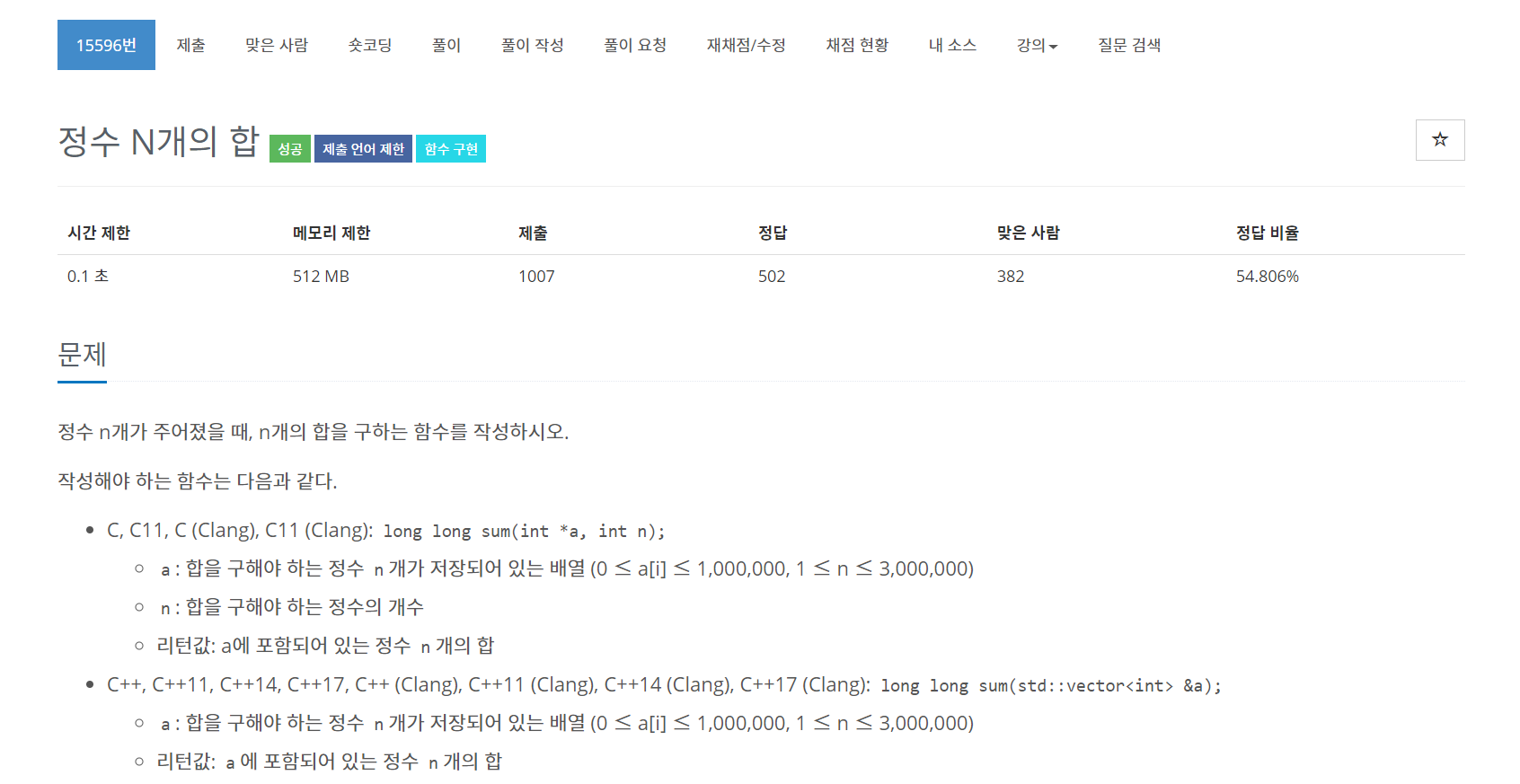 백준알고리즘(BOJ) 15596번 문제를 풀어보도록 합시다