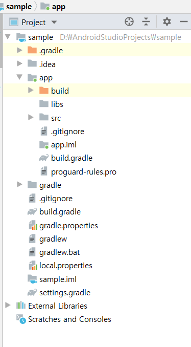 이것을 해결하기 위해서는 Android라고 써져있는 드롭다운 버튼을 눌러서 Project로 변경해주면 경로별로 바꾸게 되는 것을 확인 할 수 있습니다.