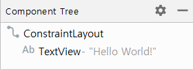 이 화면에서 Component Tree 부분을 확인해 보면 해당 화면이 어떻게 이루어져 있는지, 알 수 있습니다. 제 activity_main.xml 은 ConstraintLayout 의 자식으로 TextView가 있네요.