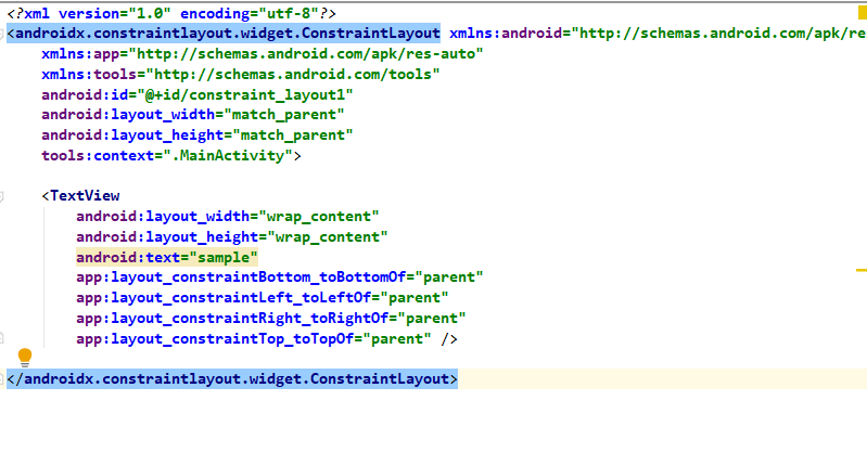 그리고, Design탭옆에 있는 Text탭을 선택해주면, xml파일의 소스코드가 보이게 되는데, 방금 변경한 부분들이 적용된 것을 알 수 있습니다.
