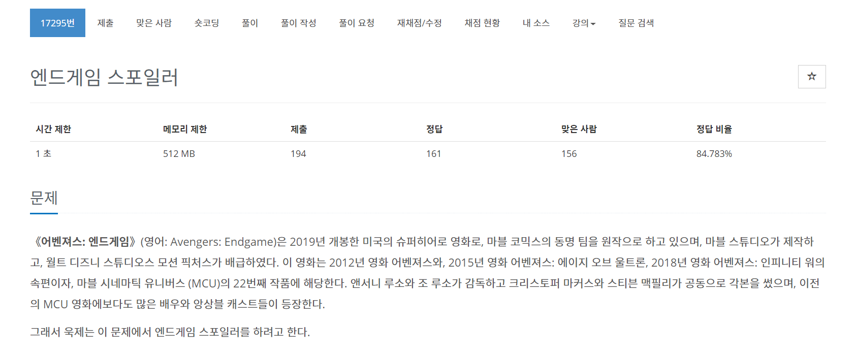제 3회 천하제일 코딩대회예선의 첫번째 문제 [엔드게임 스포일러] 문제를 풀어보자