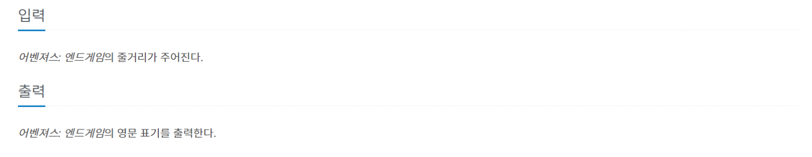 그냥 문제에 있는 어벤져스: 엔드게임의 영문표기를 출력만 하면 되는 문제이네요,,