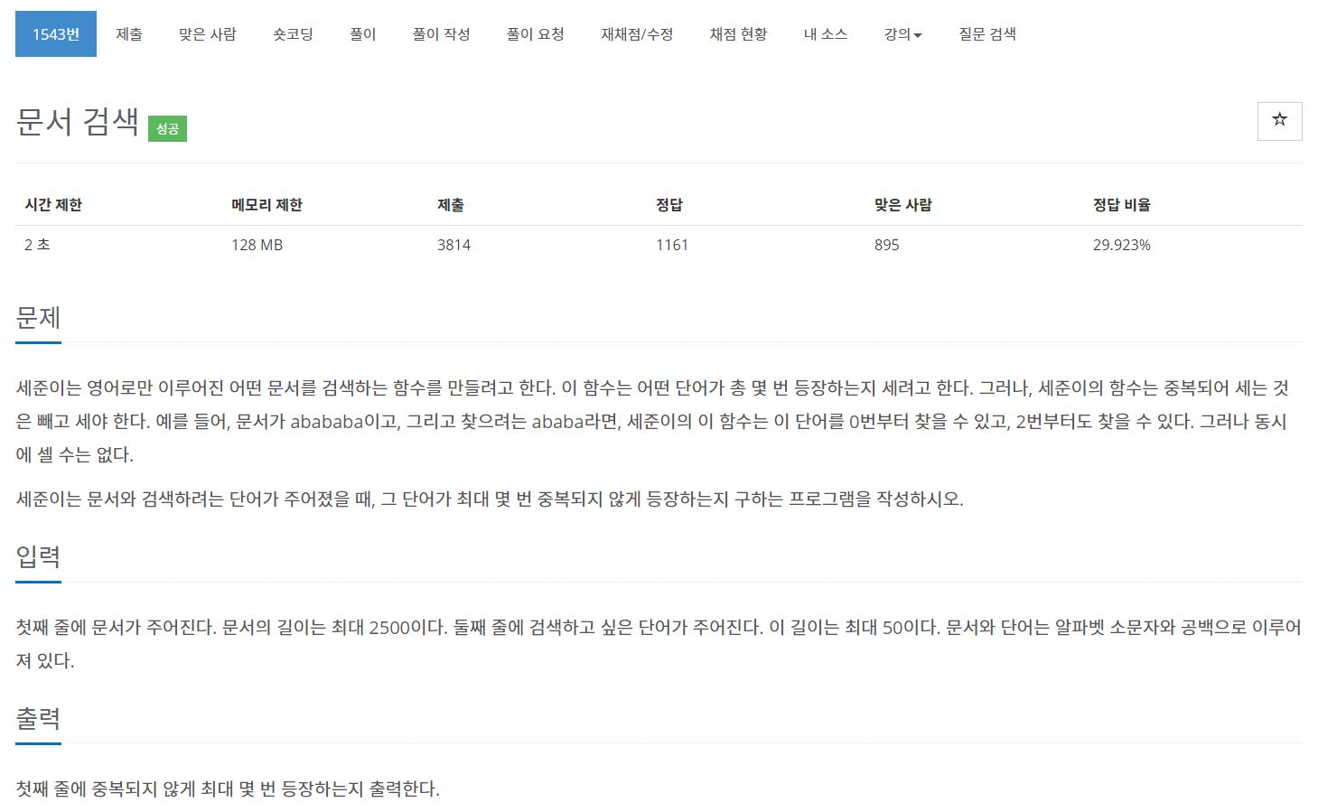 이번에는 BOJ의 1543번 문제 "문서 검색" 을 풀어보도록 하자