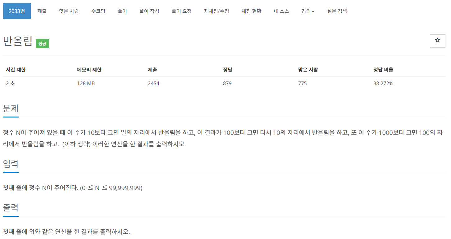 이번에는 BOJ의 2033번 문제 "반올림" 을 풀어보도록 하자