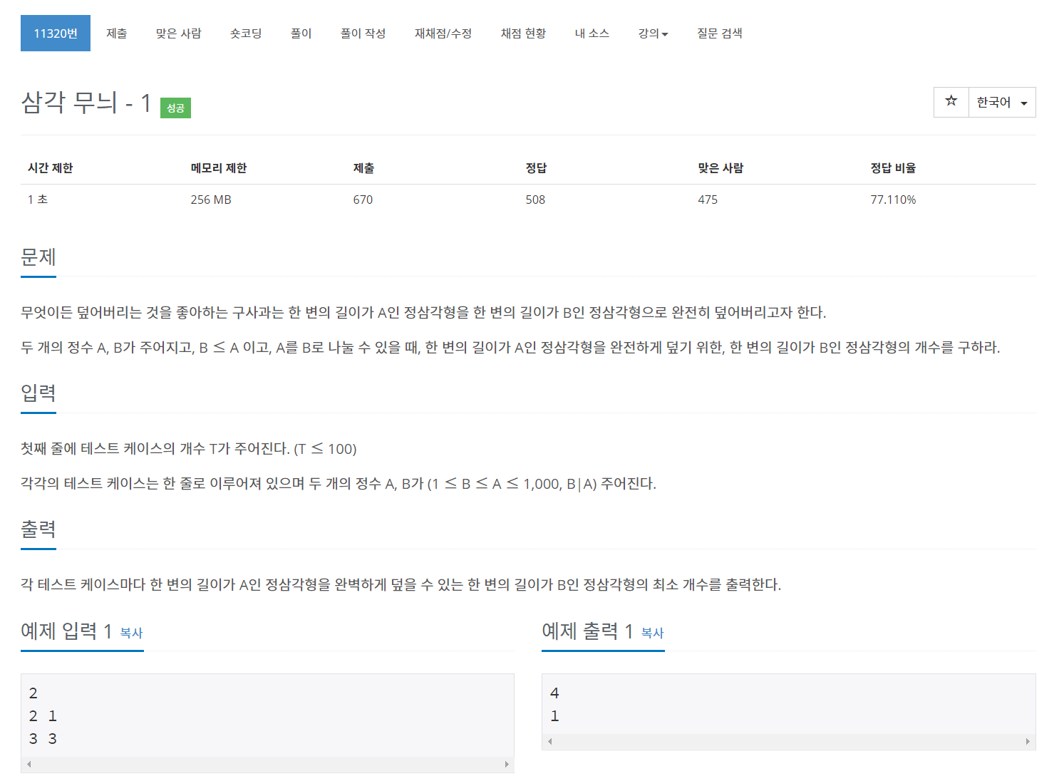 문제 : https://www.acmicpc.net/problem/11320