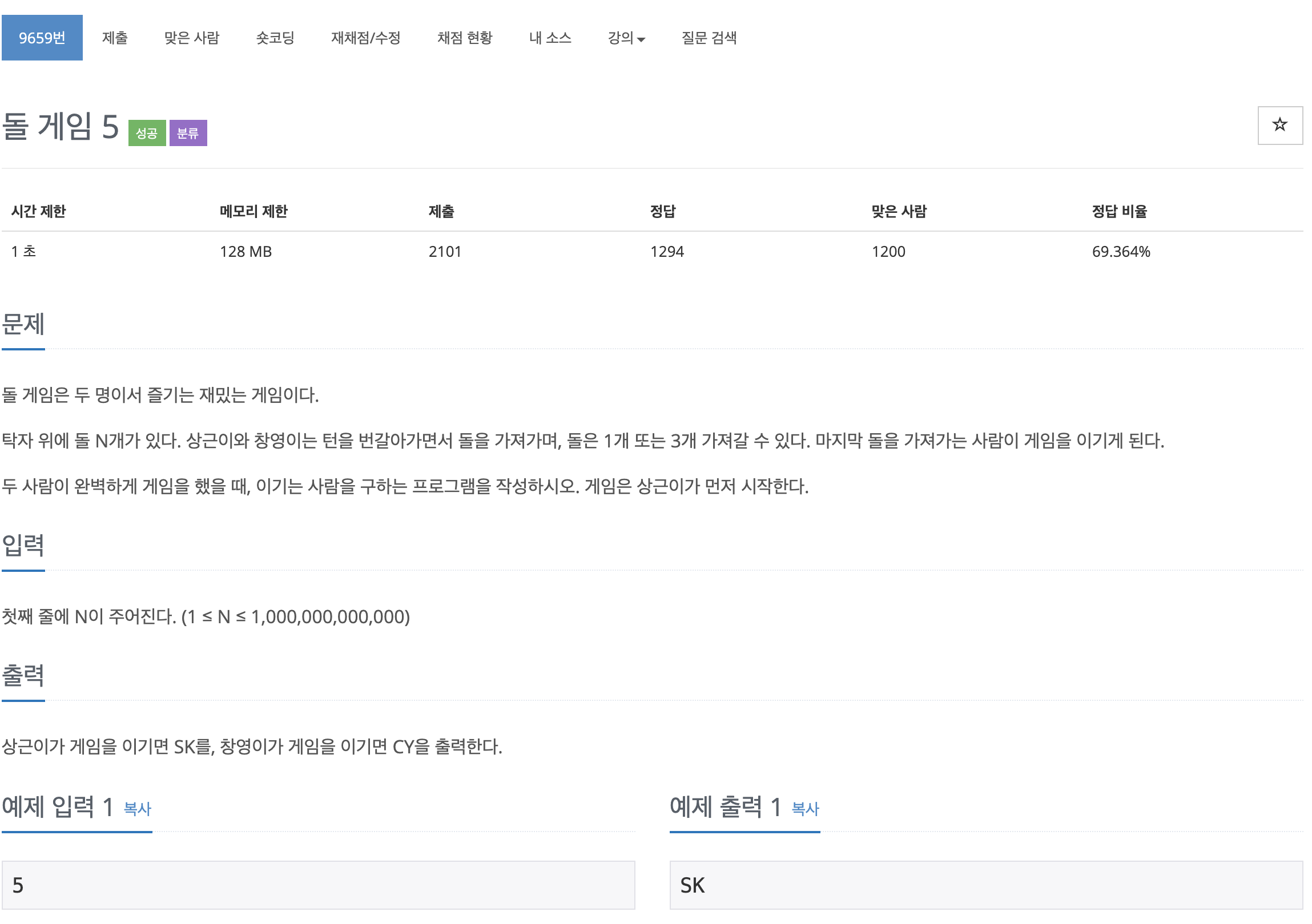 문제 : https://www.acmicpc.net/problem/9659