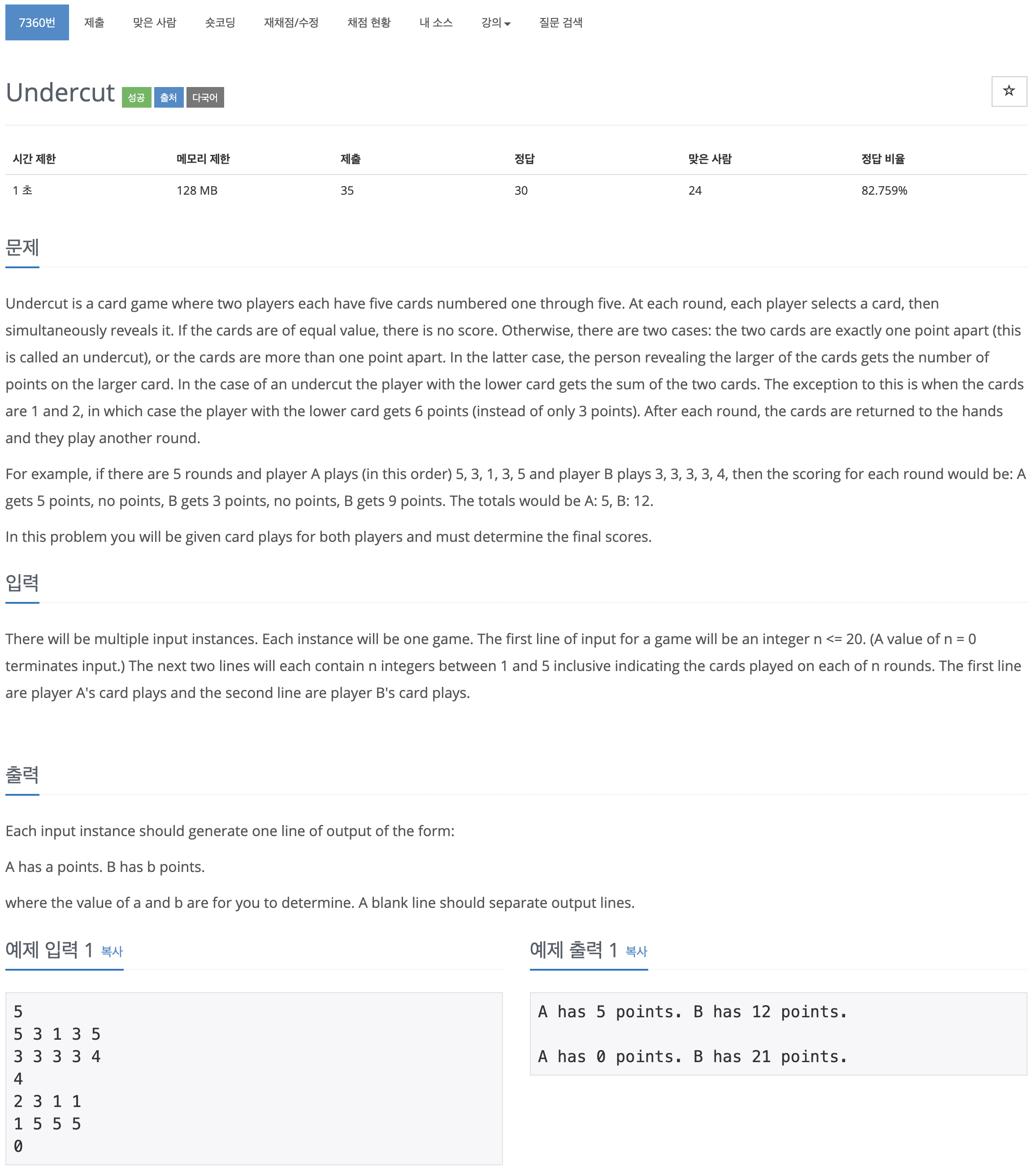 이번에는 BOJ의 7360번 문제 "Undercut" 을 풀어보도록 하자
