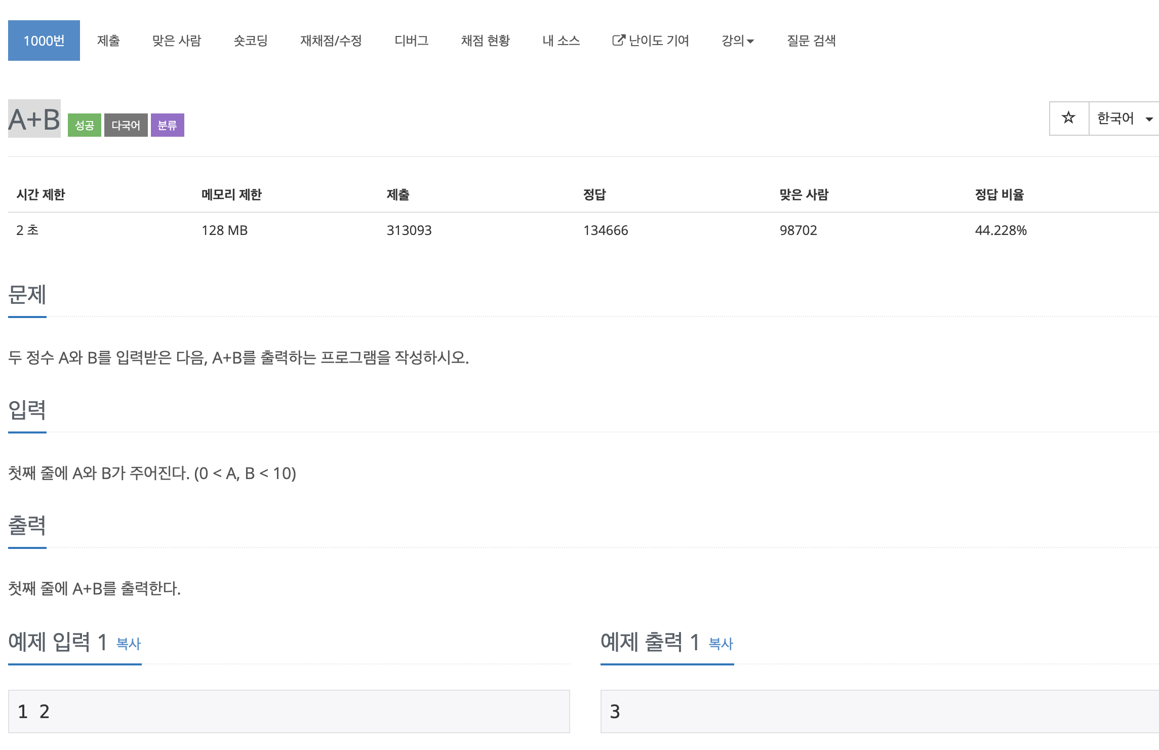 이번에는 BOJ의 1000번 문제 "A+B" 를 풀어보도록 하자