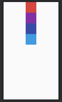 아래는 가로세로 80dp 인 빠알간색, 보라색, 남색, 하늘색 뷰를 만들고 부모에 gravity 를 center_horizontal 로 설정해 줬어. 그리고 빨간색 뷰에 android:layout_alignParentTop="true" 를 설정했고 나머지 뷰들에는 바로위에 있는 뷰의 밑에 올 수 있게끔, below 속성을"@+id/{바로 위에있는 자식 뷰}" 와 같이 설정해 줬어.