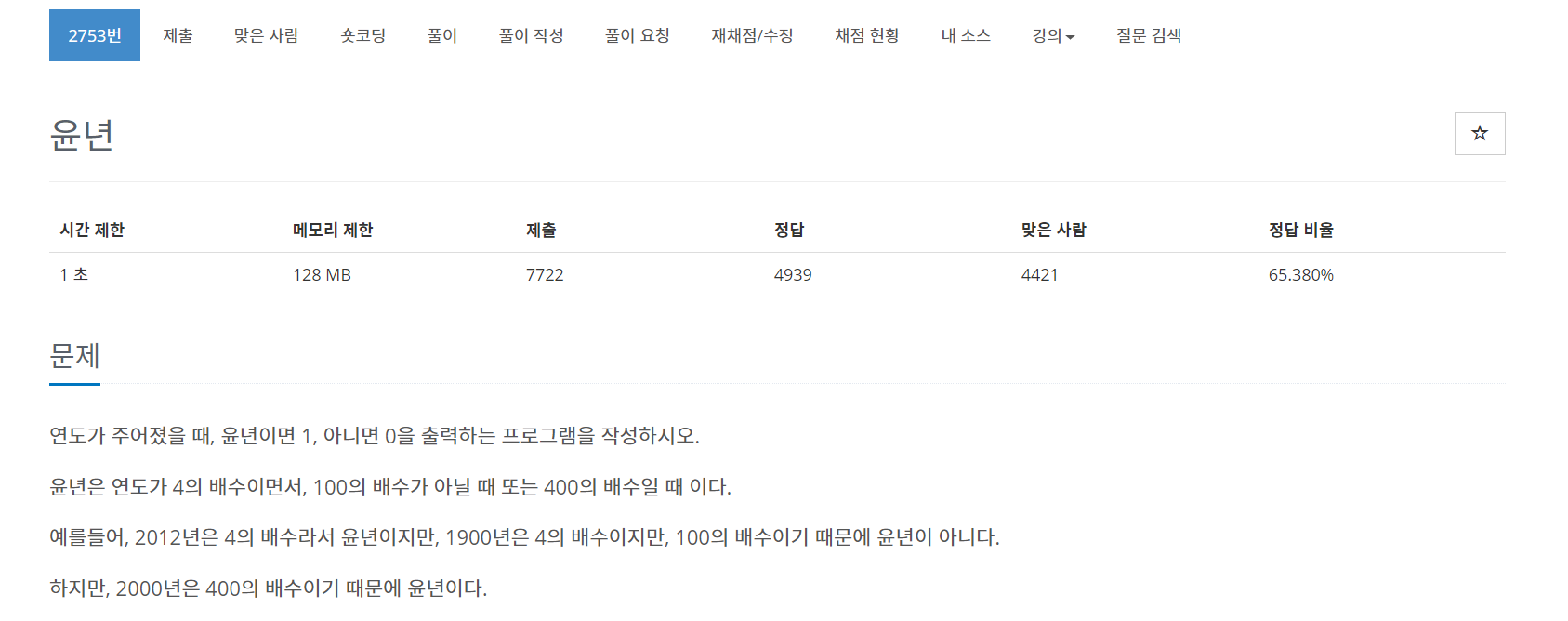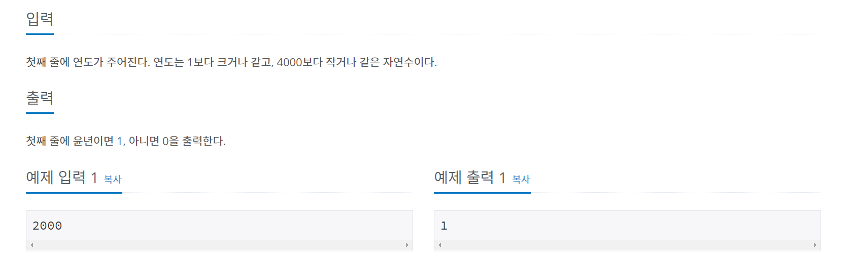 이러한 연도와 윤년과의 관계에 대해 얘기해 주는 문제이다.