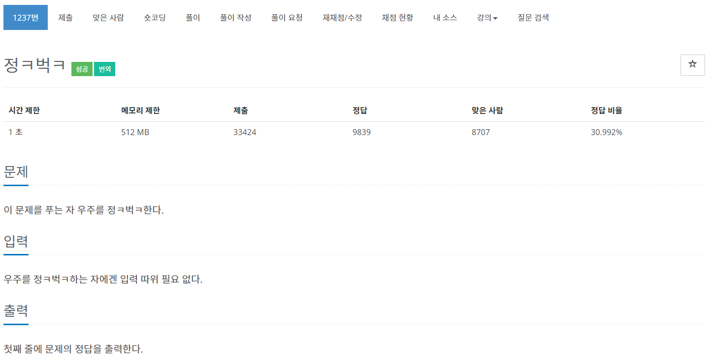 우주를 정ㅋ벅ㅋ할 사람에게는 예제 입력과 예제 출력이 필요하지 않다.