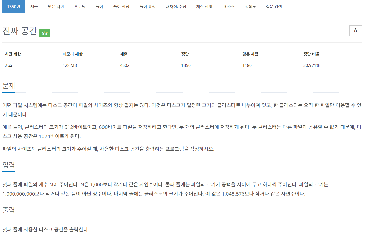이번에는 BOJ의 1350번 문제 "진짜 공간" 을 풀어보도록 하자